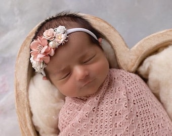 Textured Blush Knit Swaddle Wrap Or Layering For Newborn Photos Andor Matching Couture Flower Headband Bebe Bandeau By Lil Miss Sweet Pea Baby Accessories Children S Photo Props Heroelectric In